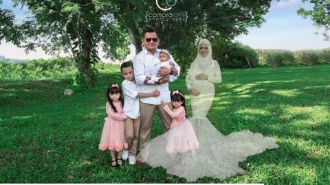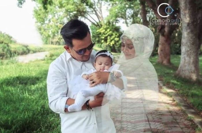 Dengan foto Wazy menggendong anak-anaknya, terlihat seolah Ad'lean masih ada bersama dengan mereka.